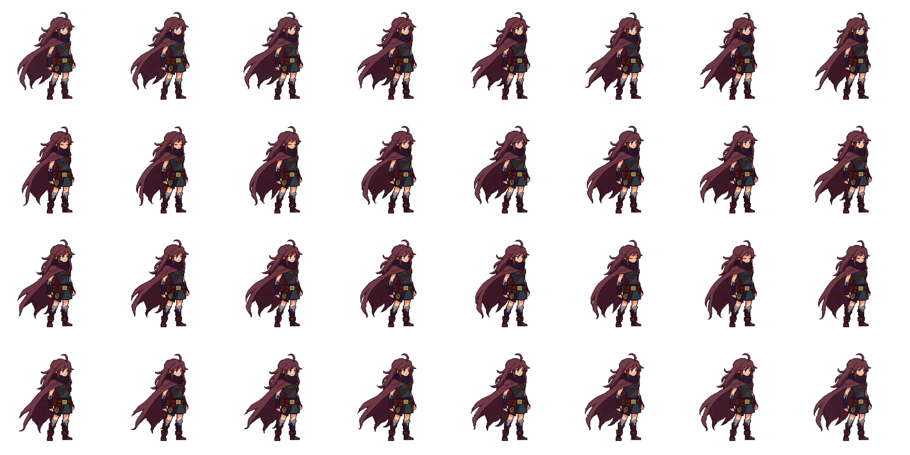 - Breathing loop shows off leather belts, pouch, and bracers with subtle parallax